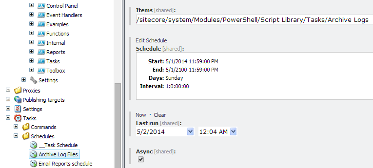 I then added the Archive Logs script here: /sitecore/system/Modules/PowerShell/Script Library/Tasks/Archive Logs