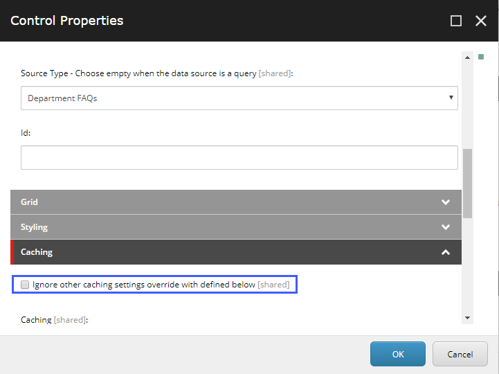 Donut caching setting on the Page List component
