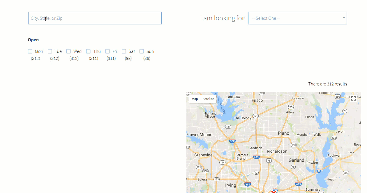- The Search Results component displays results automatically. How do you hide the results when a user has not yet performed an explicit search, such as with an address using the Location Finder component (Location Aware) or free text with Search Box component (Query Aware)?