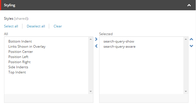 - The style “search-query-true” is added and “search-query-false” is removed when the query hash is not empty. Reverse this when “search-query-hide” is used.